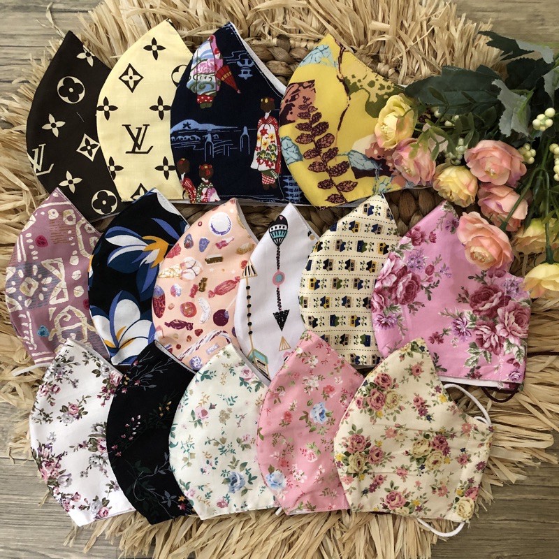 Masker dewasa unisex kain katun jepang motif bunga masker earloop headloop/hijab